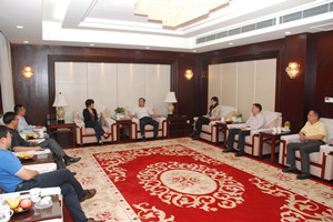 在公司貴賓室,朱會(huì)長(zhǎng)與我公司和卓爾棉業(yè)集團(tuán)的負(fù)責(zé)人進(jìn)行了座談。市委副書(shū)記、市長(zhǎng)吳錦參加了座談會(huì),并就當(dāng)前棉花及棉紡行業(yè)的有關(guān)情況同朱會(huì)長(zhǎng)交換了意見(jiàn)。