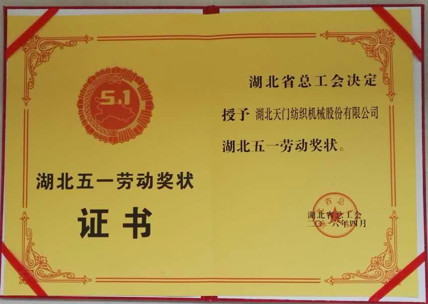 近日,公司傳來喜訊。4月28日在武漢東湖賓館召開的湖北省慶祝五一國(guó)際勞動(dòng)節(jié)暨表彰大會(huì)上,湖北天門紡織機(jī)械股份有限公司被省工會(huì)授予“五一勞動(dòng)獎(jiǎng)狀”,這是天門市本年度唯一上榜單位。