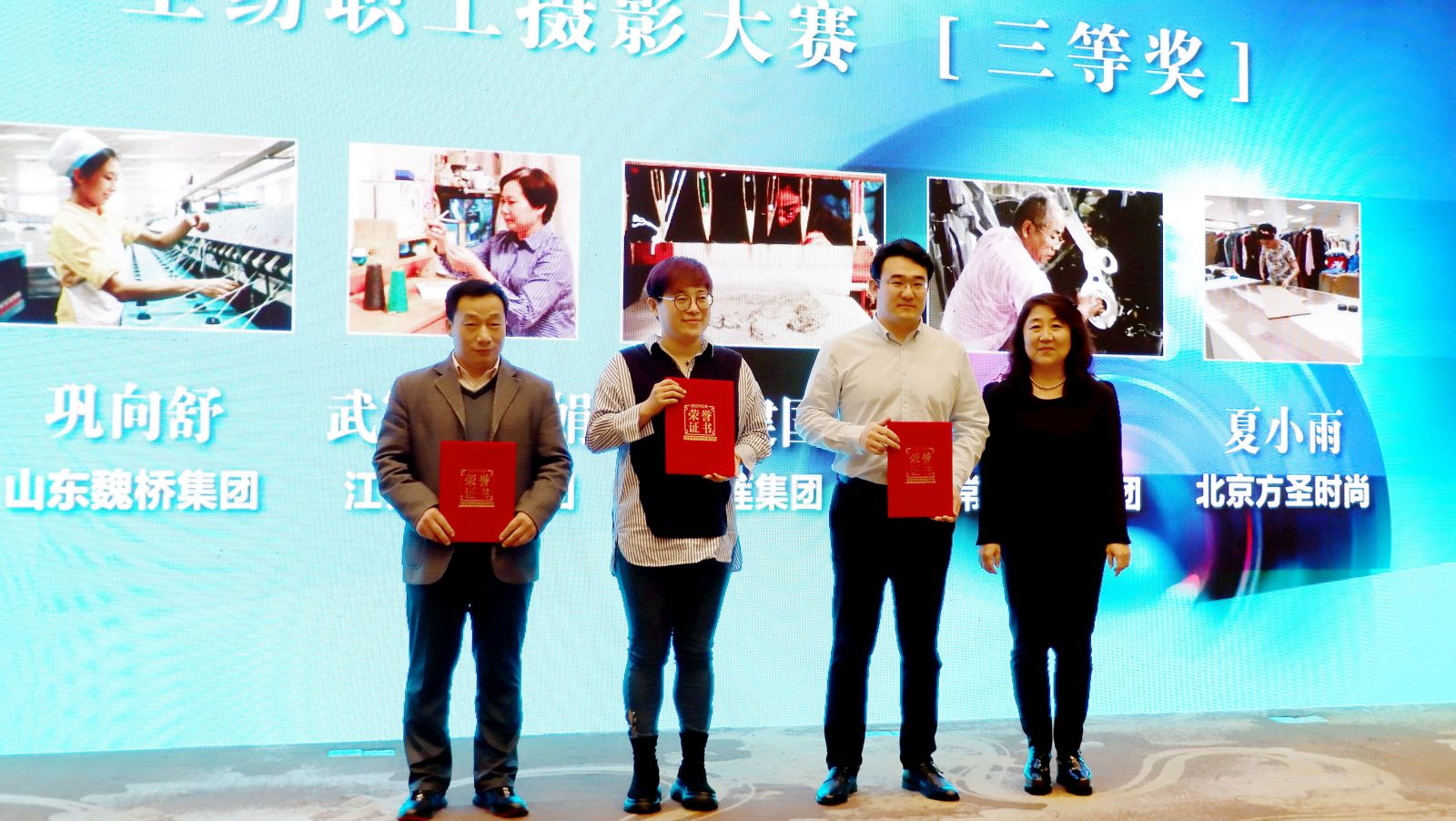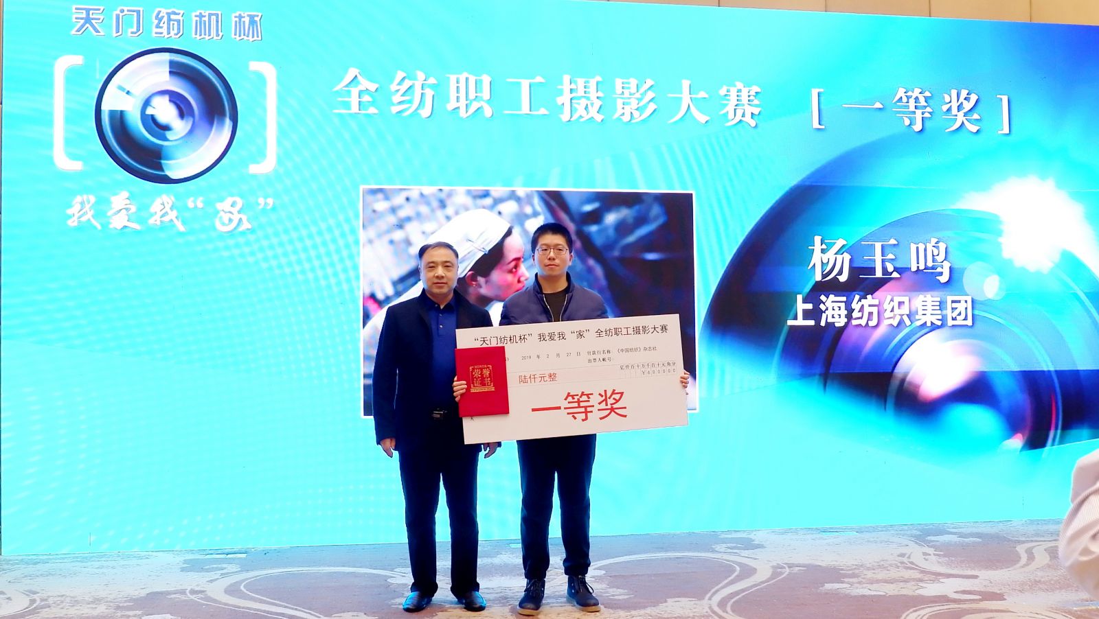 中國(guó)紡織工業(yè)聯(lián)合會(huì)傳媒中心、《中國(guó)紡織》雜志社根據(jù)《“天門紡機(jī)杯”全紡職工攝影大賽評(píng)選管理辦法》有關(guān)規(guī)定,經(jīng)評(píng)審委員會(huì)評(píng)審,評(píng)選表彰活動(dòng)領(lǐng)導(dǎo)小組審定,最終評(píng)定:東方國(guó)際(集團(tuán))有限公司楊玉鳴獲一等獎(jiǎng),恒力集團(tuán)有限公司鄭高峰等3人獲二等獎(jiǎng),山東魏橋創(chuàng)業(yè)集團(tuán)有限公司鞏向舒等6人獲三等獎(jiǎng)以及最佳組織獎(jiǎng)2名、網(wǎng)絡(luò)人氣獎(jiǎng)2名、優(yōu)秀獎(jiǎng)16名。