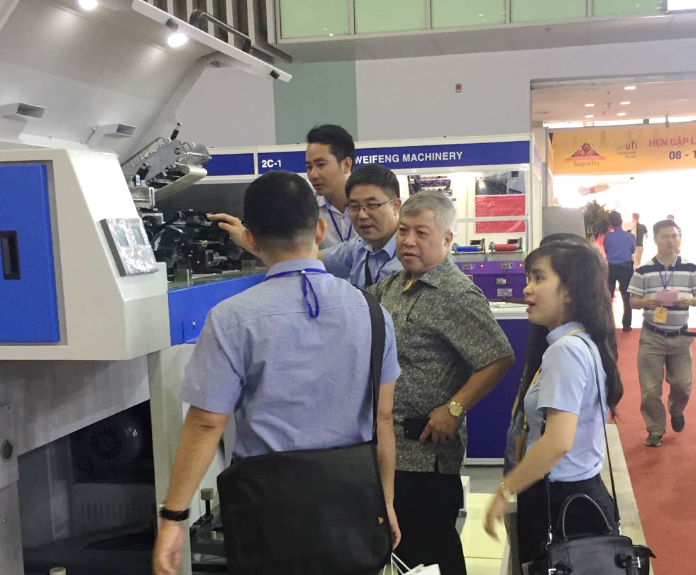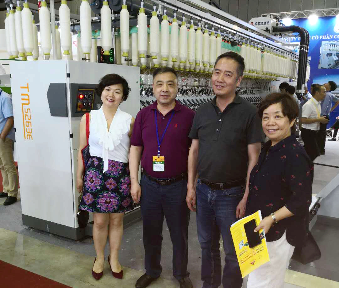 在展會(huì)上,位于A2-2D-1湖北天門紡織機(jī)械股份有限公司展位人頭攢動(dòng)、客戶云集,成為整個(gè)展會(huì)的一大亮點(diǎn),VINATEX NAM DINH、VICOTEX、 成功紡織、臺(tái)灣興業(yè)、臺(tái)南紡織、東光公司等當(dāng)?shù)仄髽I(yè)負(fù)責(zé)人親赴現(xiàn)場(chǎng)參觀,華孚時(shí)尚董事長孫偉挺等嘉賓在天門紡機(jī)展位認(rèn)真觀看設(shè)備演示,詳細(xì)了解了產(chǎn)品的新性能和新工藝,對(duì)天門紡機(jī)并條機(jī)與細(xì)紗機(jī)兩款展機(jī)給與高度評(píng)價(jià)。