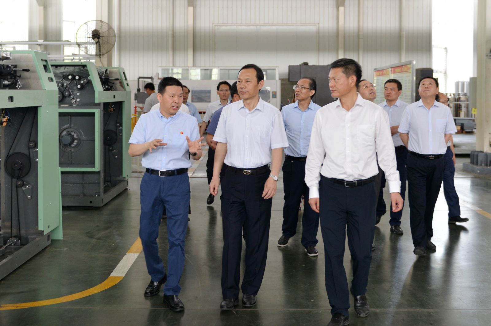 2019年7月16日上午,湖北省委副書記、武漢市委書記馬國強在天門市委書記莊光明的陪同下,考察了天門紡機。公司董事長沈方勇引導(dǎo)馬書記一行參觀了生產(chǎn)現(xiàn)場和綜合展示廳,并向馬書記介紹了企業(yè)基本情況。沈方勇說:天門紡機是一家老字號機械制造企業(yè),通過改革、改制、改造,成為國內(nèi)集研發(fā)、生產(chǎn)、銷售于一體的紡織裝備重要供應(yīng)商和中國紡織機械協(xié)會副會長單位,主導(dǎo)產(chǎn)品棉紡并條機在國內(nèi)無論生產(chǎn)規(guī)模還是產(chǎn)銷量均處于領(lǐng)先地位。雖然今年以來中美貿(mào)易摩擦給行業(yè)帶來了許多不利影響,但目前公司生產(chǎn)經(jīng)營運行正常,新產(chǎn)品研發(fā)后勁十足,下一個趕超的目標(biāo)是代表世界先進(jìn)水平的瑞士立達(dá)和德國特呂茨勒的同類產(chǎn)品,力爭打造國際品牌,實現(xiàn)可持續(xù)發(fā)展。馬書記聽到匯報后表示贊賞,希望天門紡機今后在產(chǎn)品技術(shù)上不斷創(chuàng)新,在品牌培育上繼續(xù)發(fā)力,在生產(chǎn)經(jīng)營上進(jìn)一步做大做強,為民族工業(yè)爭氣爭光。