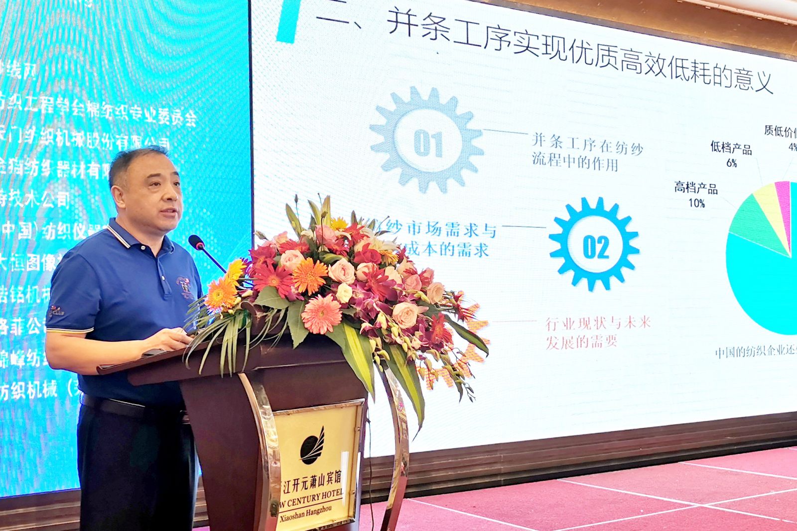 中國(guó)棉紡織行業(yè)協(xié)會(huì)葉戩春副會(huì)長(zhǎng)、中國(guó)紡織工程學(xué)會(huì)棉紡織專業(yè)委員會(huì)副主任兼秘書長(zhǎng)謝春萍教授、湖北天門紡織機(jī)械股份有限公司焦倫進(jìn)總經(jīng)理、重慶金貓紡織器材有限公司楊崇明董事長(zhǎng)等嘉賓分別為大會(huì)致辭。