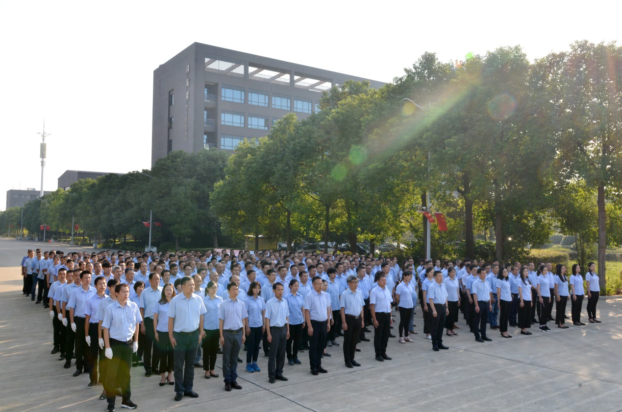 2019年9月30日早晨,一輪紅日從東方升起,給大地涂抹上一層金輝。天門紡機400多名員工在公司廣場列成方隊,為即將舉行的升國旗、唱國歌活動作準(zhǔn)備。