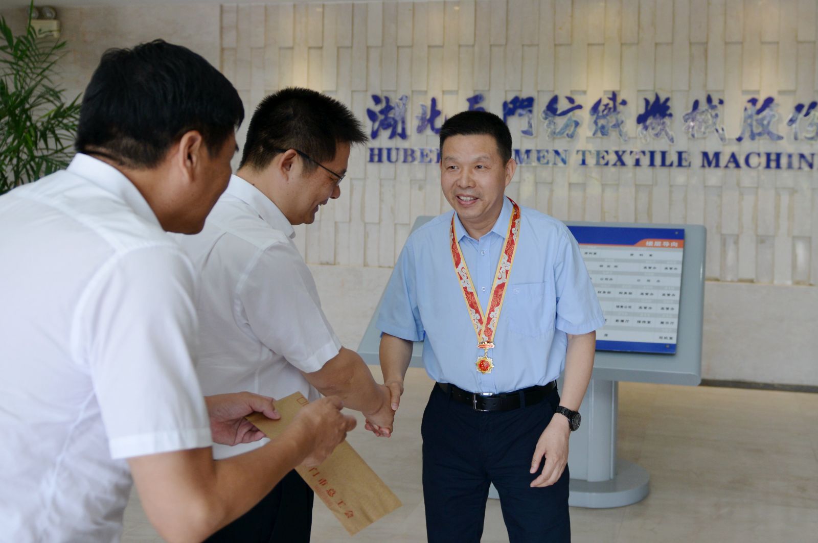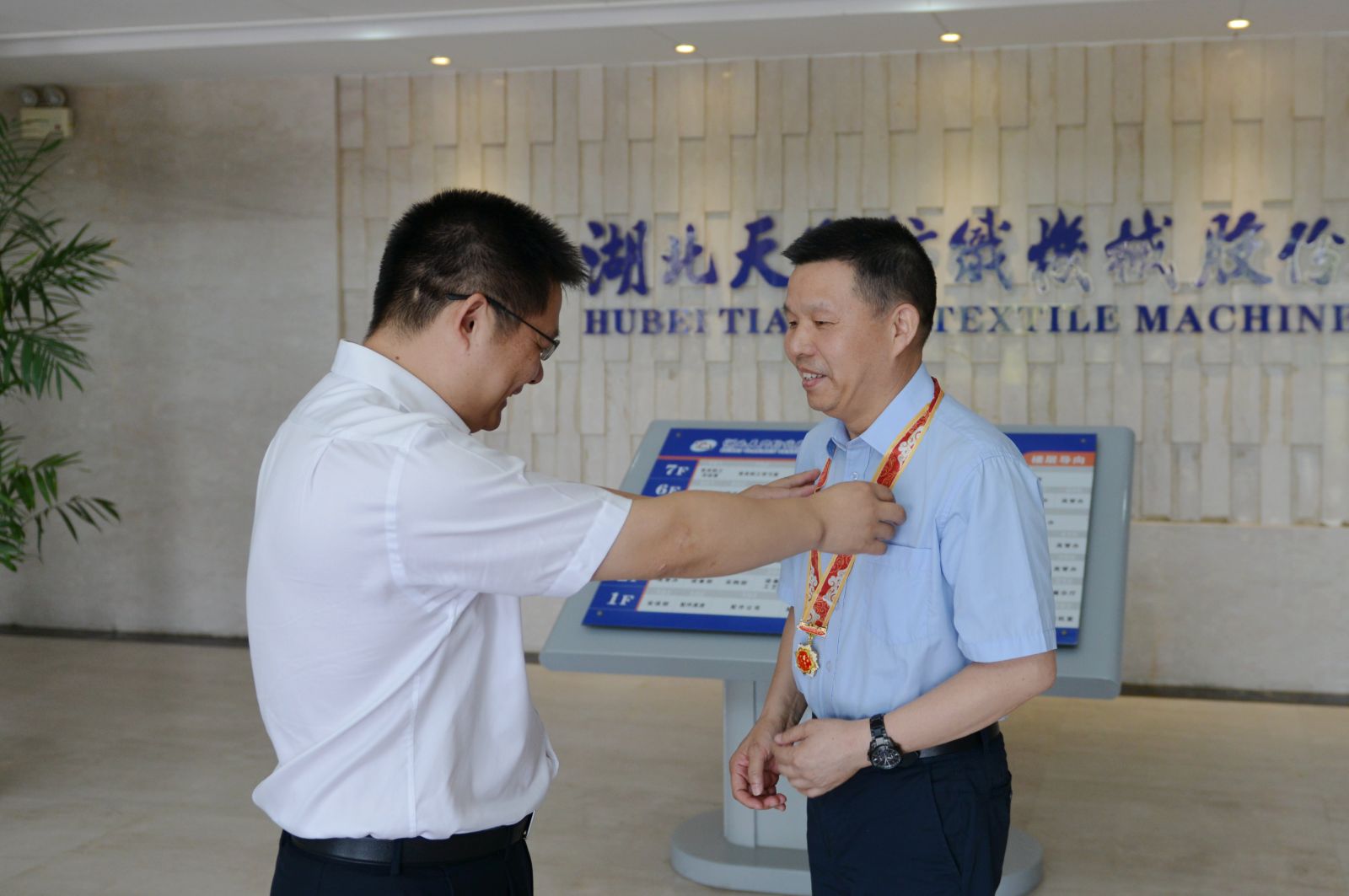 9月30日上午,天門(mén)市委、市政府及總工會(huì)相關(guān)領(lǐng)導(dǎo)來(lái)到天門(mén)紡機(jī),為董事長(zhǎng)沈方勇頒發(fā)由中共中央、國(guó)務(wù)院、中央軍委授予的“慶祝中華人民共和國(guó)七十周年”紀(jì)念章,并與沈方勇董事長(zhǎng)親切合影留念。