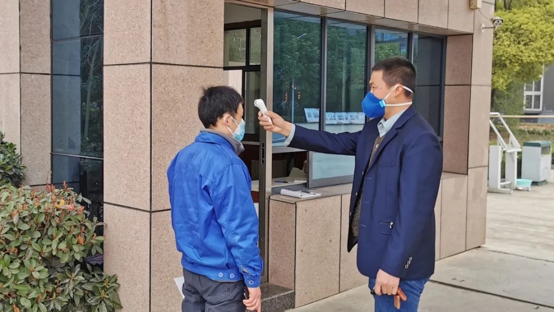 經過防控人員一系列的查看通行證、反復核對名單,測量體溫登記后,王克文終于將參加發(fā)貨的員工接到公司