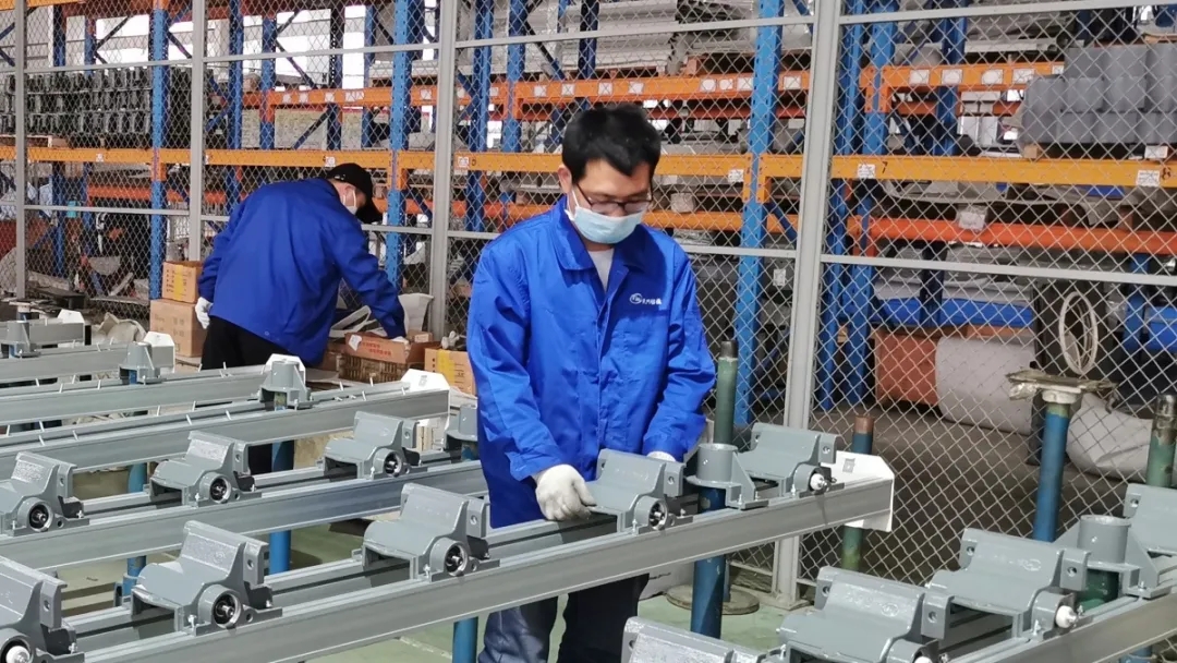 倉庫主管胡旭峰根據發(fā)貨單對號發(fā)放產品部件