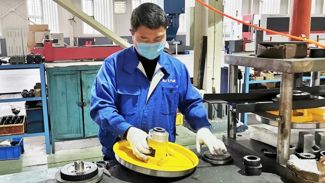 裝配工曾碧輝抓緊發(fā)貨需要配套的軸承組裝