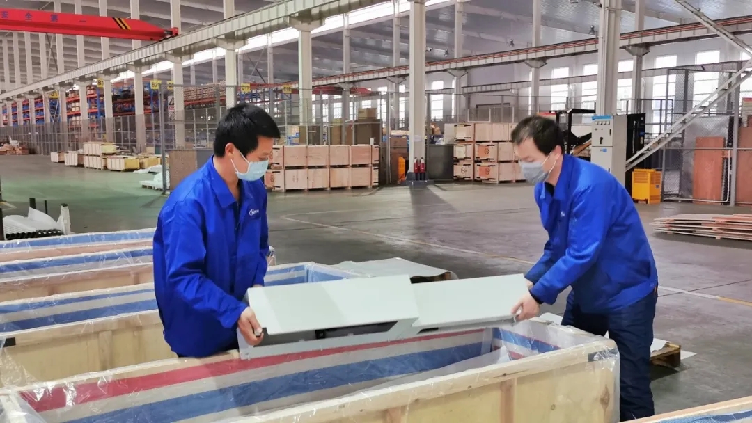 為了能夠盡快給客戶發(fā)貨,天門紡機想方設法,協調了各方資源,克服了重重困難,終于開啟了發(fā)貨模式。春節(jié)前天門紡機根據2020年上半年的銷售合同和全年的市場預測,物資采購充足,資金準備充足,同時加班加點,完成了一季度需發(fā)貨的并條機生產任務,并適當地庫存了一些產品,對客戶的供貨暫時不會造成影響。