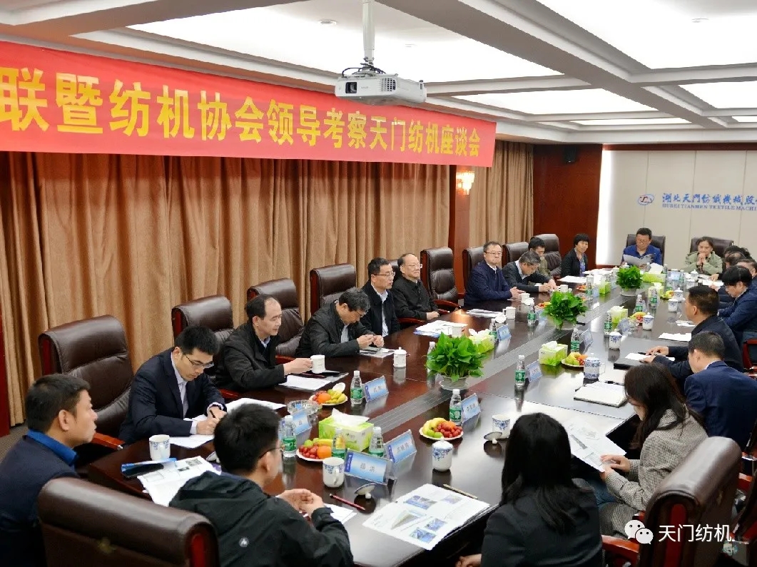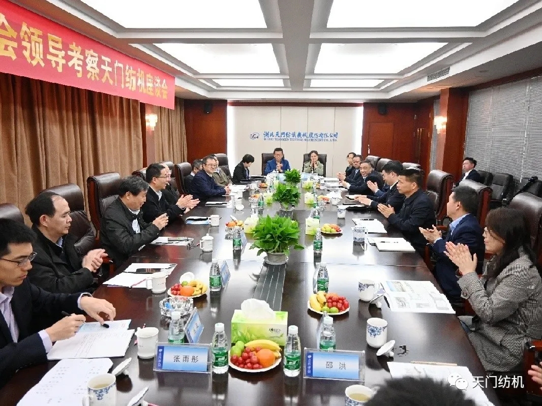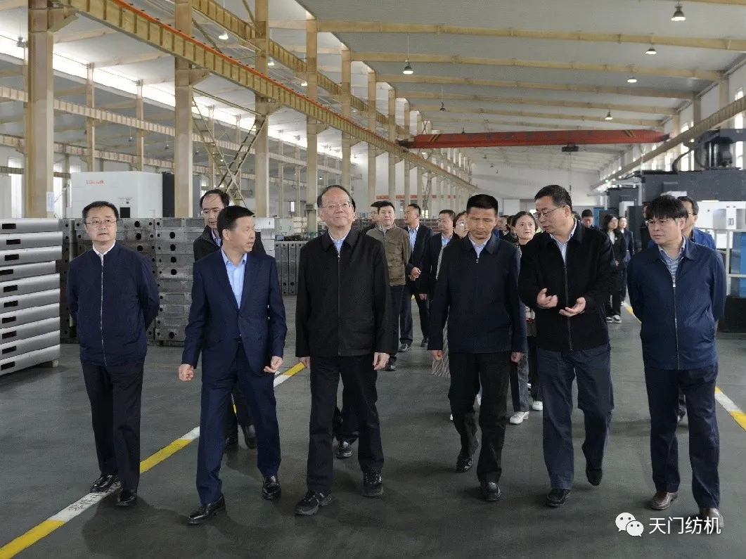 4月14日,中國紡織工業(yè)聯(lián)合會黨委書記兼秘書長高勇,在中國紡織機械協(xié)會會長顧平的陪同下,帶領(lǐng)紡機協(xié)會相關(guān)部門負責(zé)人到天門紡機調(diào)研。天門市委副書記、市長楊興銘,副市長高文博以及市經(jīng)信局局長張文輝陪同參與調(diào)研活動。