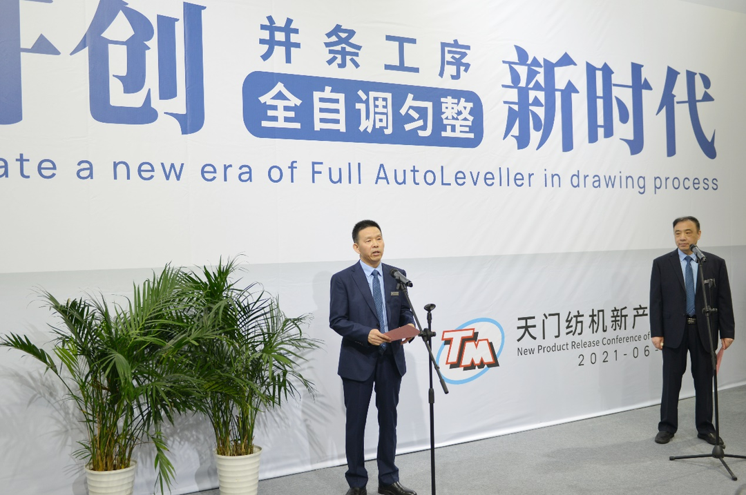 高勇書記充分肯定多年來天門紡機在并條機研發(fā)領域取得的豐碩成果,高度贊同天門紡機提出的“并條工序全自調勻整時代”。他表示,并條工序是決定紡紗質量的重要環(huán)節(jié),自調勻整裝置在并條工序中越來越普及。“并條工序全自調勻整”是大勢所趨,將會有效提升紗線和棉條的質量,有效提升勞動生產率,將會贏得越來越多的紡織專家及企業(yè)的認可和響應,如果所有并條機都用上自調勻整,將對中國整個棉條和紗線質量非常有益。希望天門紡機爭做行業(yè)推進智能制造發(fā)展的號手,勇當技術創(chuàng)新的先鋒!希望廣大企業(yè)和企業(yè)家關注新型自調勻整機型,提早布局智能化棉紡成套設備,在“十四五”期間提升紡機工業(yè)智能制造水平。