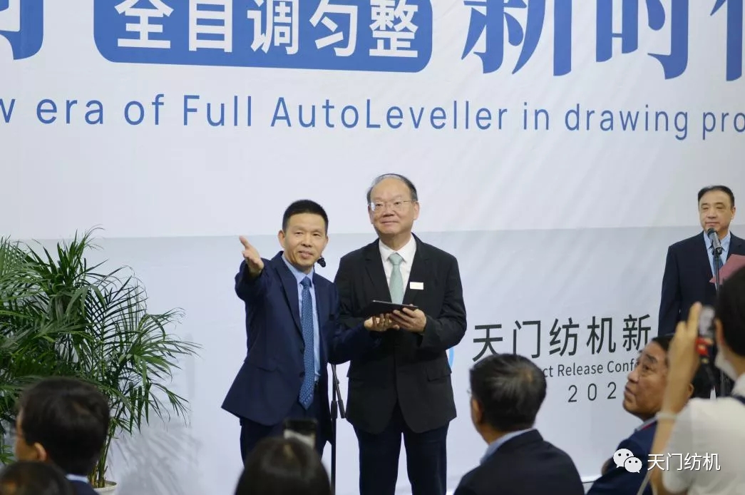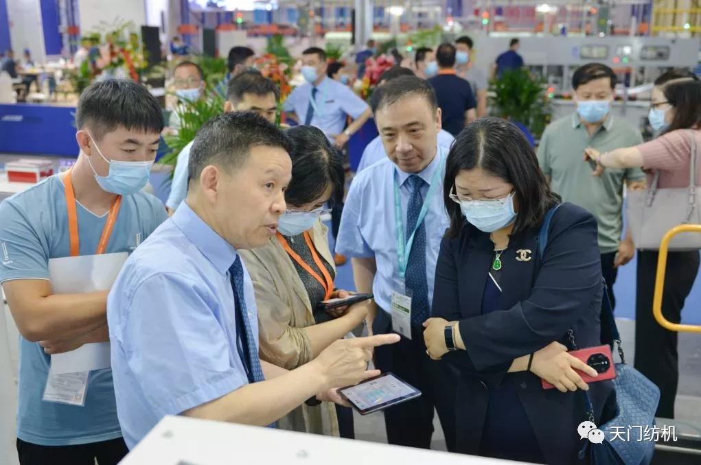 2021年6月12日,在上海國際紡機展上天門紡機舉行“開創(chuàng)并條工序全自調勻整新時代”新品發(fā)布會,中紡聯(lián)黨委書記高勇使用手持終端為新產品開機