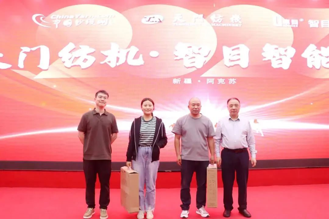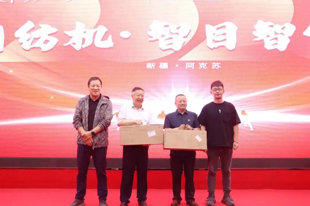 天門紡機(jī)新疆辦事處主任趙凱抽取一等獎并頒獎合影