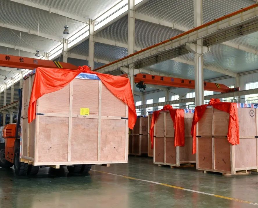 新春開工伊始,天門紡機(jī)生產(chǎn)車間內(nèi)已是機(jī)器轟鳴,各員工精神飽滿,一片喜慶氣氛,即將發(fā)往鄆城恒發(fā)紡織的并條機(jī)披紅掛彩,整裝待發(fā)。
