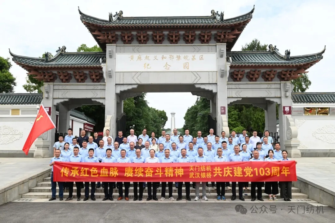 7月1日上午,天門紡機聯(lián)合武漢銀橋組織65名黨員奔赴中國第一將軍縣紅安,開展以“追尋紅色印記,凝聚奮進力量”為主題的黨日活動,以此慶祝中國共產黨誕辰103周年。