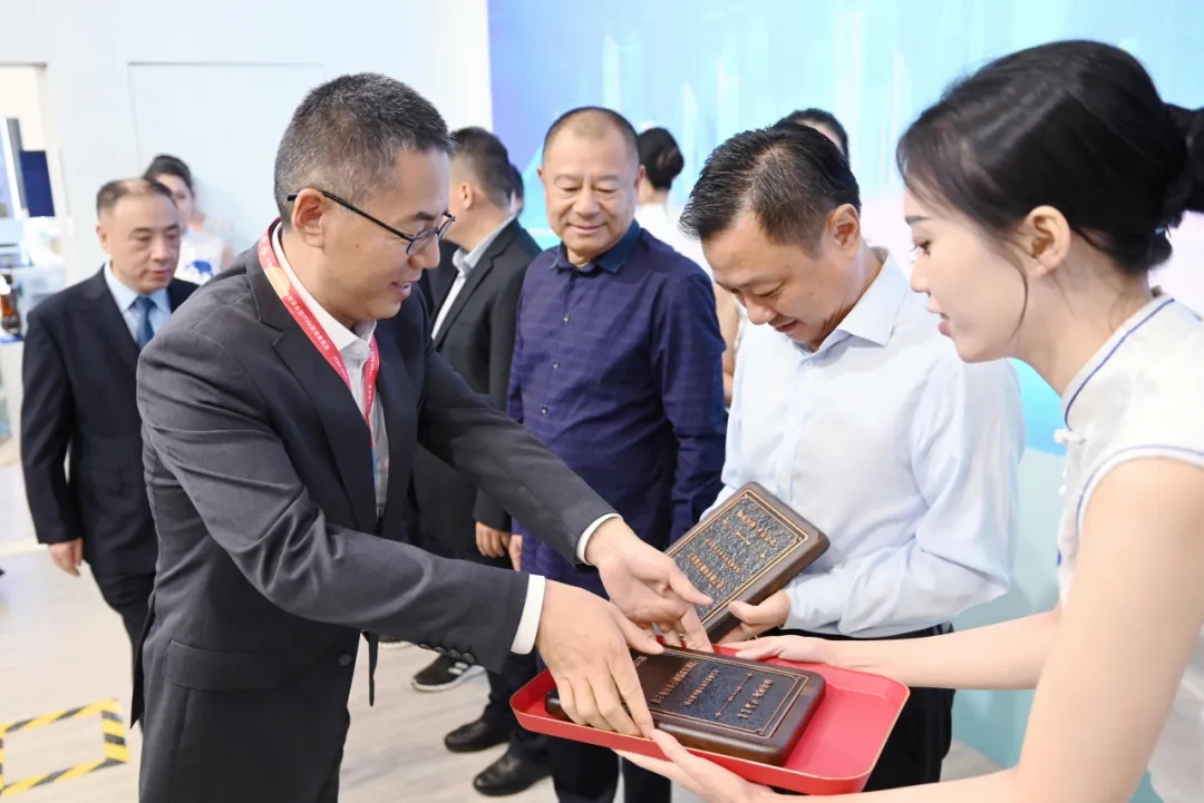 天門(mén)紡機(jī)總經(jīng)理焦倫進(jìn)宣布在協(xié)同創(chuàng)新中作出突出貢獻(xiàn)的單位和個(gè)人名單,中國(guó)紡織工業(yè)聯(lián)合會(huì)徐迎新副會(huì)長(zhǎng)為倪俊龍董事長(zhǎng)、陳冰教授、曹中華博士、陸惠文先生頒發(fā)紀(jì)念章,為臺(tái)達(dá)、匯川、南通五洲等3家企業(yè)代表頒發(fā)紀(jì)念牌。
