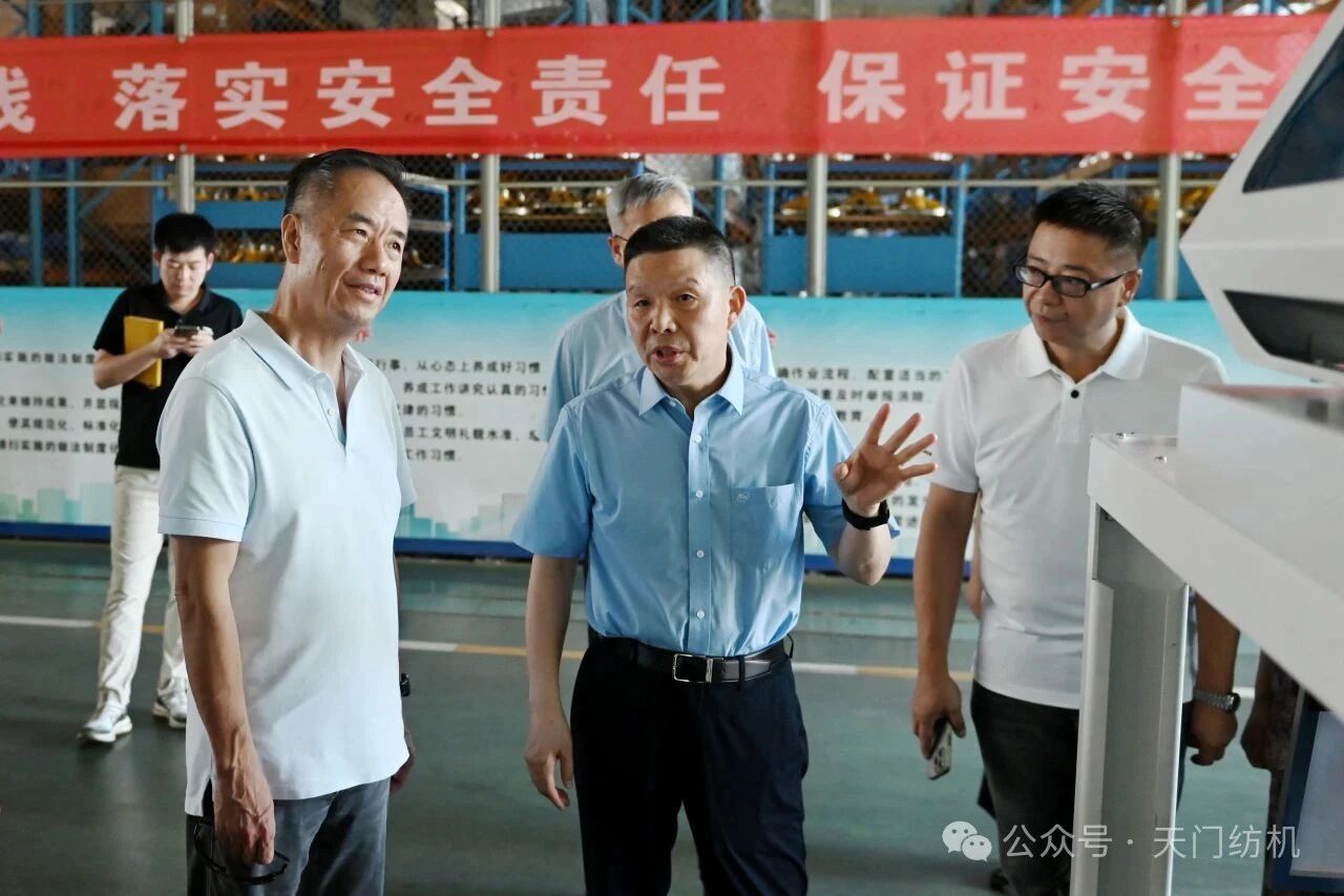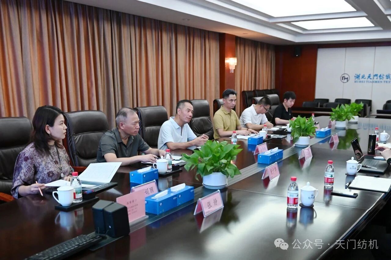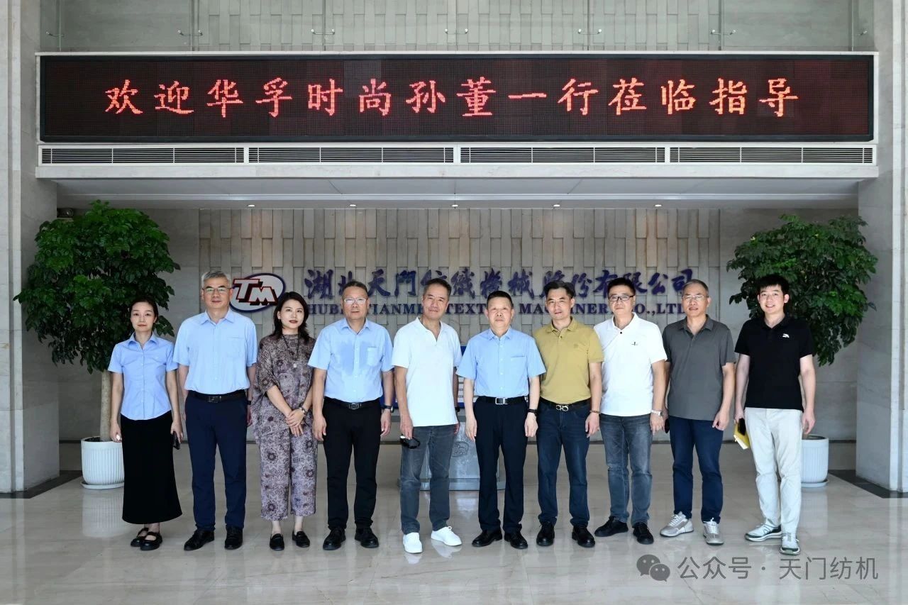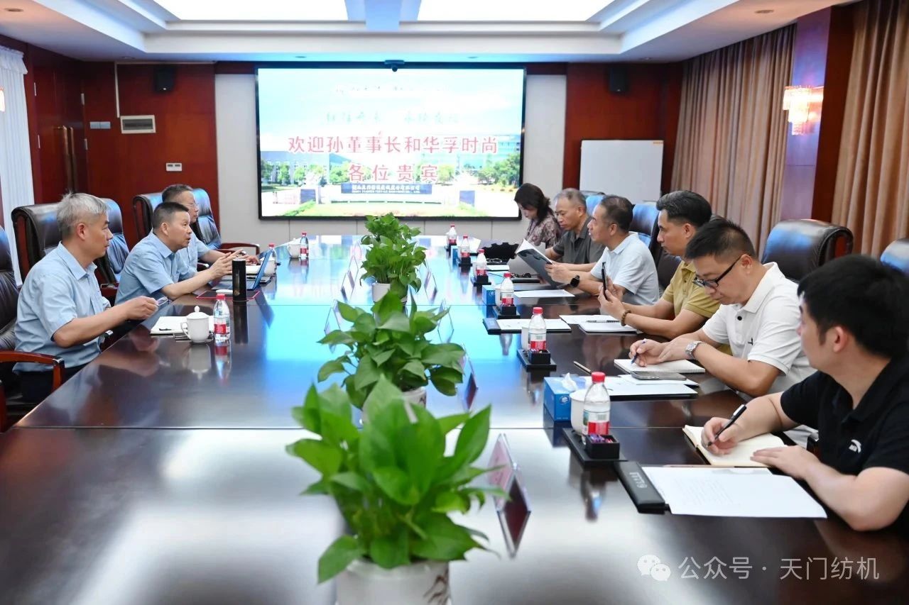 2025年8月26日,華孚時尚股份有限公司董事長孫偉挺一行6人專程到訪天門紡機(jī)進(jìn)行考察交流。公司董事長沈方勇等領(lǐng)導(dǎo)熱情接待到訪客人,雙方圍繞行業(yè)形勢及協(xié)同發(fā)展等議題進(jìn)行了深入交流,并就淮北及越南等新建項目的再次合作達(dá)成意向。