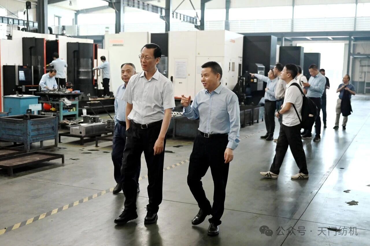 潘雪平董事長一行在沈方勇董事長的陪同下,深入車間一線,實(shí)地感受了天門紡機(jī)繁忙的生產(chǎn)現(xiàn)場以及火熱的“智慧工廠”項(xiàng)目施工現(xiàn)場,了解到了公司在智能化改造和數(shù)字化轉(zhuǎn)型方面的最新成果。沈董事長講解了公司產(chǎn)品的特點(diǎn)、特色,并就TM系列并條機(jī)的市場行情進(jìn)行了重點(diǎn)分析和介紹。